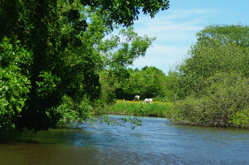 Sur le Brivet, on est en sécurité. La rivière est calme, pas très large et surtout pas de risque de croiser un bateau à moteur ils ne sont pas autorisés à circuler sur le Brivet.